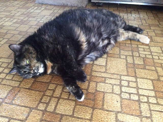 When the hots are here, it is sometimes good to lay on the floor. Often it is cooler. Julie does that, but it helps that it is in the kitchen ;) MOL!!! Purrs,Georgia and Julie